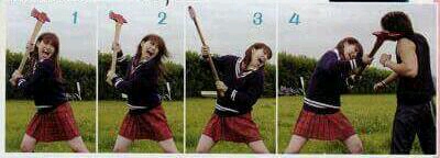 ・斧道の気合は「打」斧の気合は「ヤー」、「仕」斧の気合は「エイ」と力強く腹から発声する。